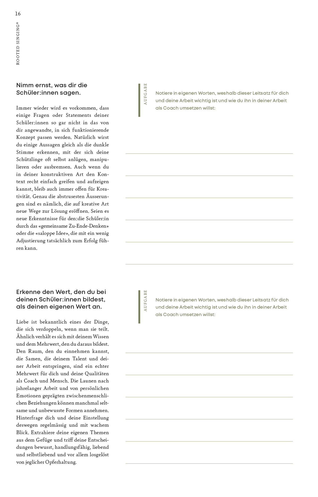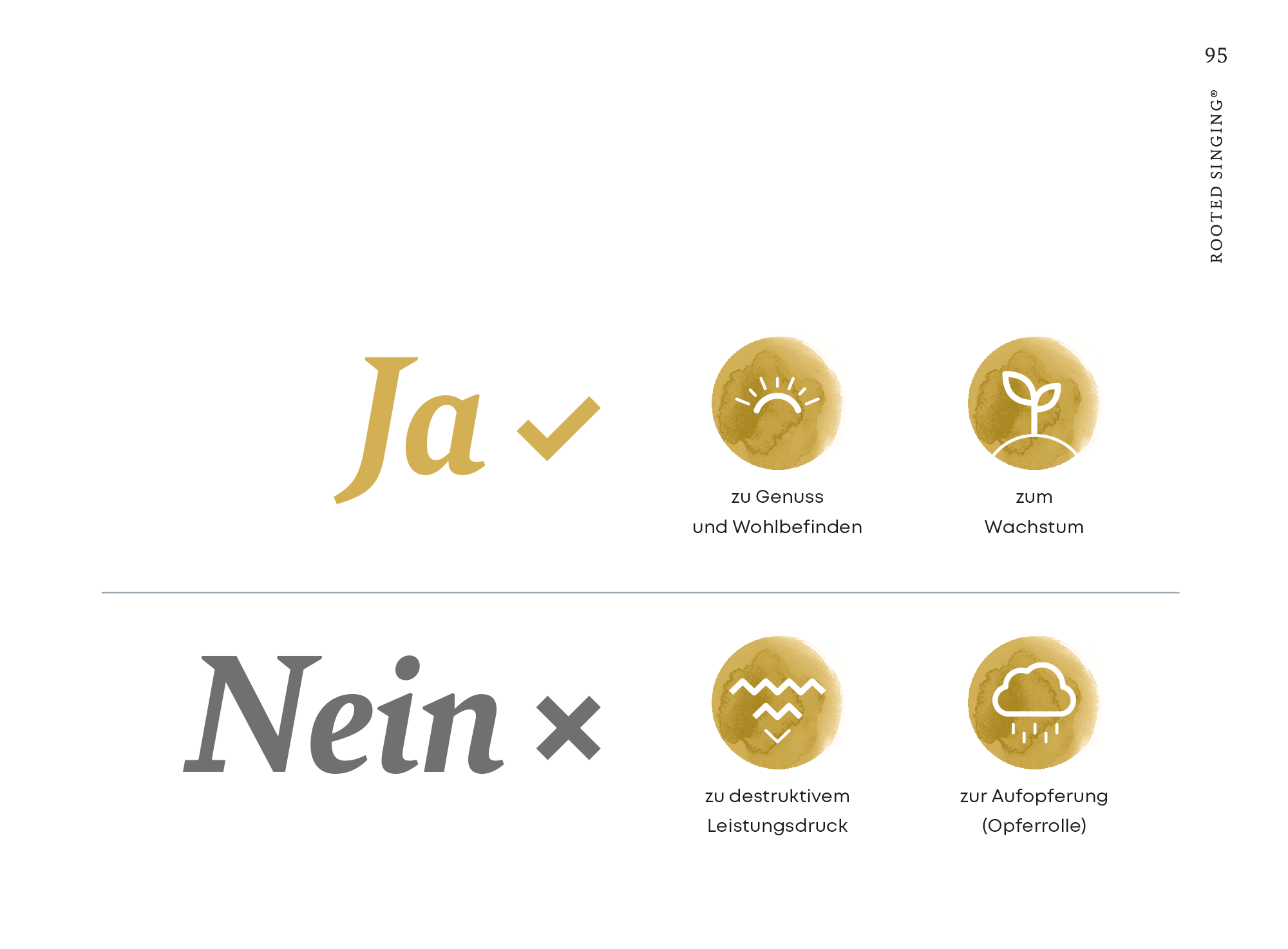 Rooted Singing® ist ein Lehrgang / Selbststudium zum Vocal Coach. Ich wurde glücklicherweise fürs Printdesign engagiert. Zum Lehrgang erhalten die angehenden Vocal Coaches drei Lern- und Arbeitsbücher: für mich war die Arbeit ein wunderbarer Mix aus Konzeption, Schriftwahl, Design von wiederkehrenden Elementen, Icons sowie viel Fleissarbeit beim Abfüllen der über 350 Seiten. Alles, was mein Polygrafenherz sich wünscht wurde in einem Projekt vereint.